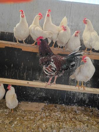 We have 5 Speckled Sussex 2 roosters and 3 hens all go together and they are one year old. Located just outside of Caledonia Ohio call or text 419-964-361 four